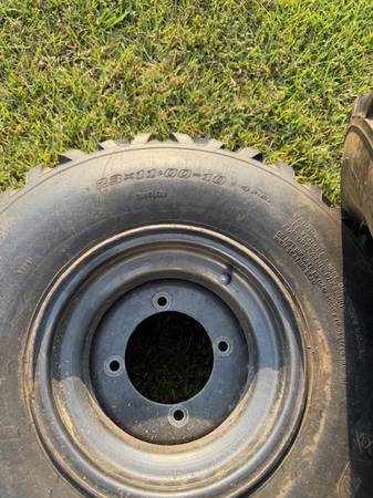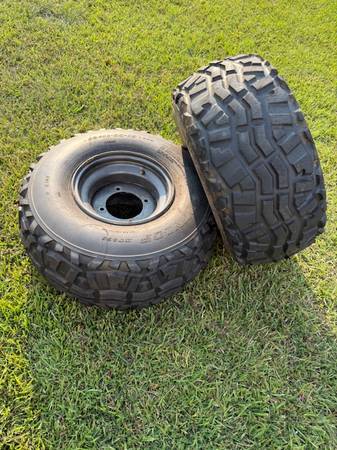 4 Kawasaki Mule Tires with Wheels. Two almost new Mud Bug Mud tires 23x11-10 MAX X/S with wheels and two Dunlop stock tires 23x11-10 with wheels. All four for $100. Mud tires ready for Hunting season.