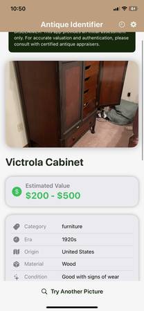 A vintage Victrola cabinet from the 1920s. ai estimates value at $200 to $500