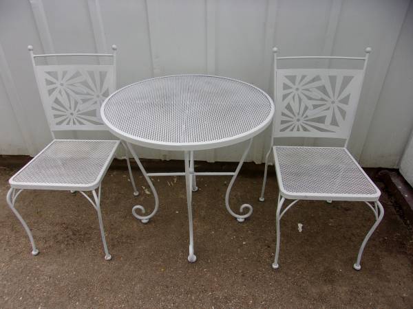 WHITE ROUND PATIO TABLE WITH 2 MATCHING CHAIRS, STRONG AND STURDY, NO FLAWS SUPER COMFORTABLE, IDEAL FOR PATIO OR PORCH AREA LIKE NEW. SMOKE FREE HOME $200 CASH, FIRM PRICE CALL