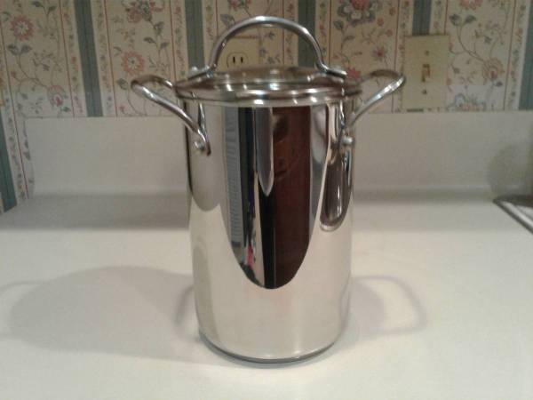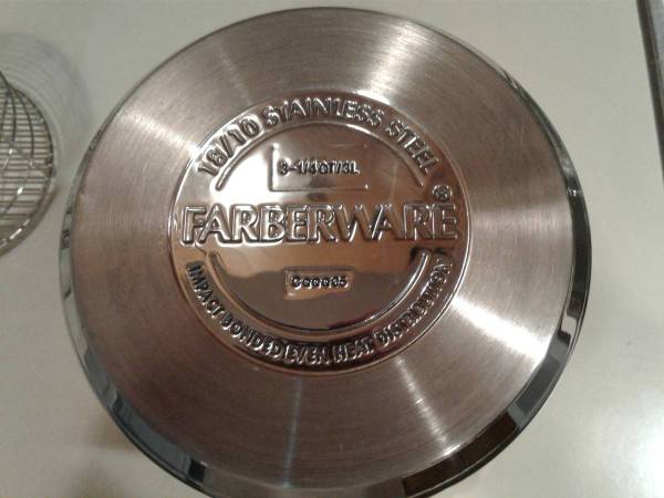 Like New Farberware Asparagus Steamer. 4 Qt 3L. 18/10 Stainless steel. Three piece set -pot, basket, lid.