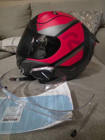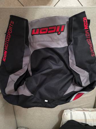 Hjc grey modular helmet 2xl with Sena communication system Hjc red helmet large with Sena communication system Tourmaster boots size 10 Tourmaster jacket black large Icon hooligan jacket medium Icon...