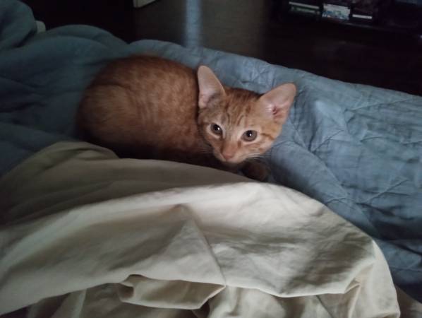 Hi I have a 16 week old orange and white spotted and striped female kitten to good home! She is a sweet as she can be, she's the last of my cats litter but she is the best out of them all! She has a wonderful disposition and we will greatly miss her but I already have two female cats and cannot take on another female so I need to rehome her as soon as possible. You can text Danielle at show contact info