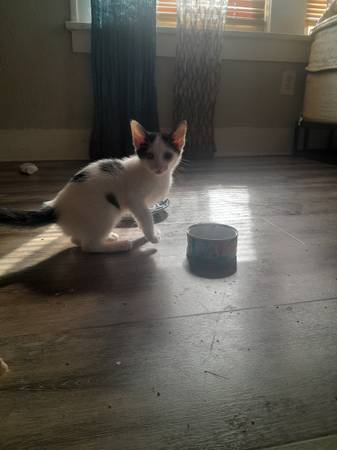 Male white, with black cap and tail, Female white black cap and tail with spots.